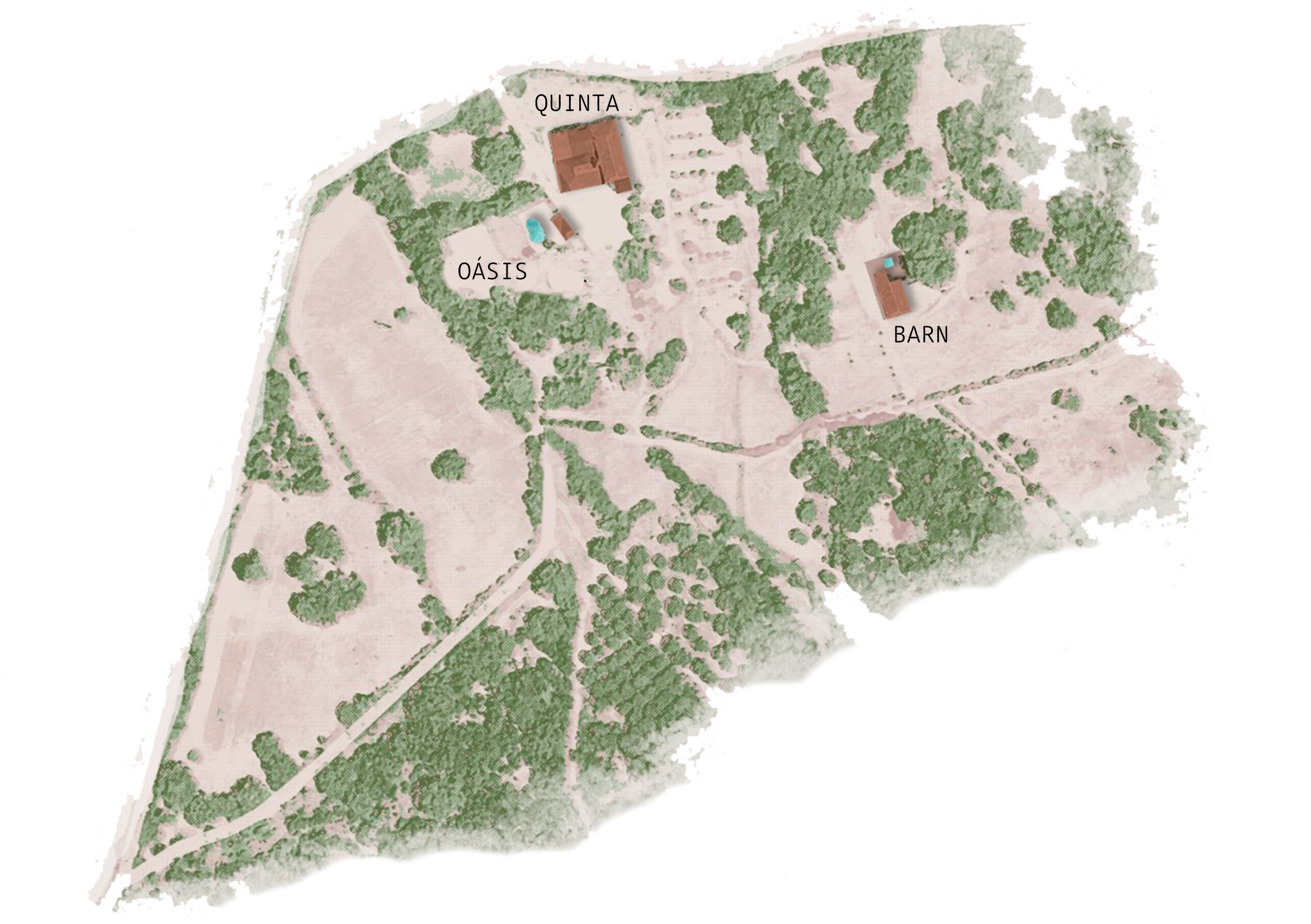 Surrounded by 20 hectares of wild beauty, the Quinta, the Oásis, and the Barn each have their own magic. You will feel peace and nourishment from the unique calmness of the property.